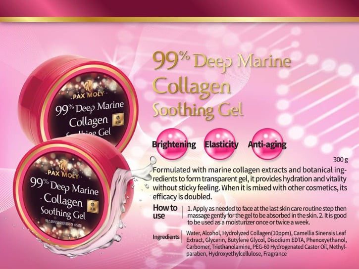 Pax Moly 99% Deep Marine Collagen Soothing Gel made with Collagen and natural ingredients, Botanical made, Soothing after suntan / Body & face moisturizer. You can use this gel in 10 ways. Such as Facial toner/lotion/moisturizer, Anti-aging gel, Make-up base, After the shave, Body gel after bathing, Hair Treatment, Nail care, Facial pack, Wrinkle care, Aromatic massage. But we just suggest you, you can use this product just body and face for better result.